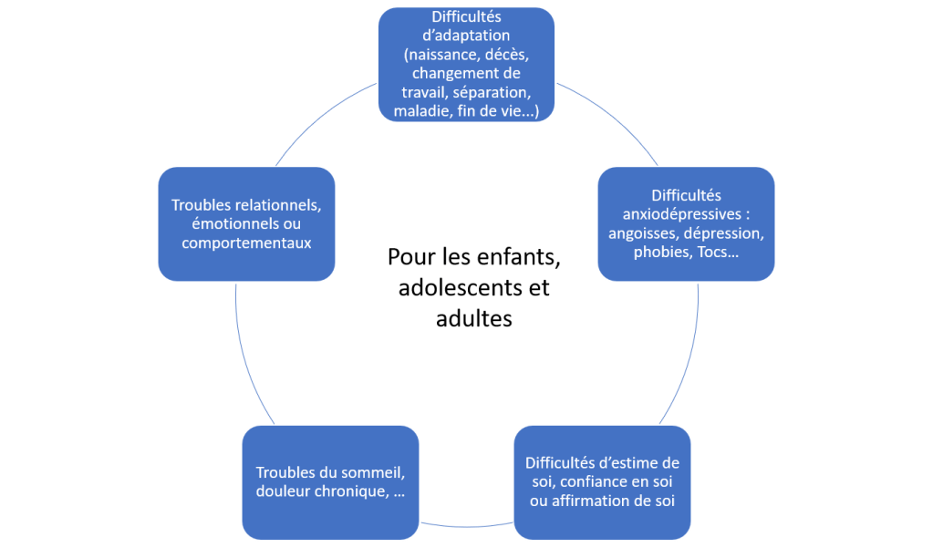 Je reçois les enfants, adolescents, adultes et couples ayant besoin de soutien ou d’une aide psychologique, afin d’aborder ensemble des difficultés ou questionnements tels que :